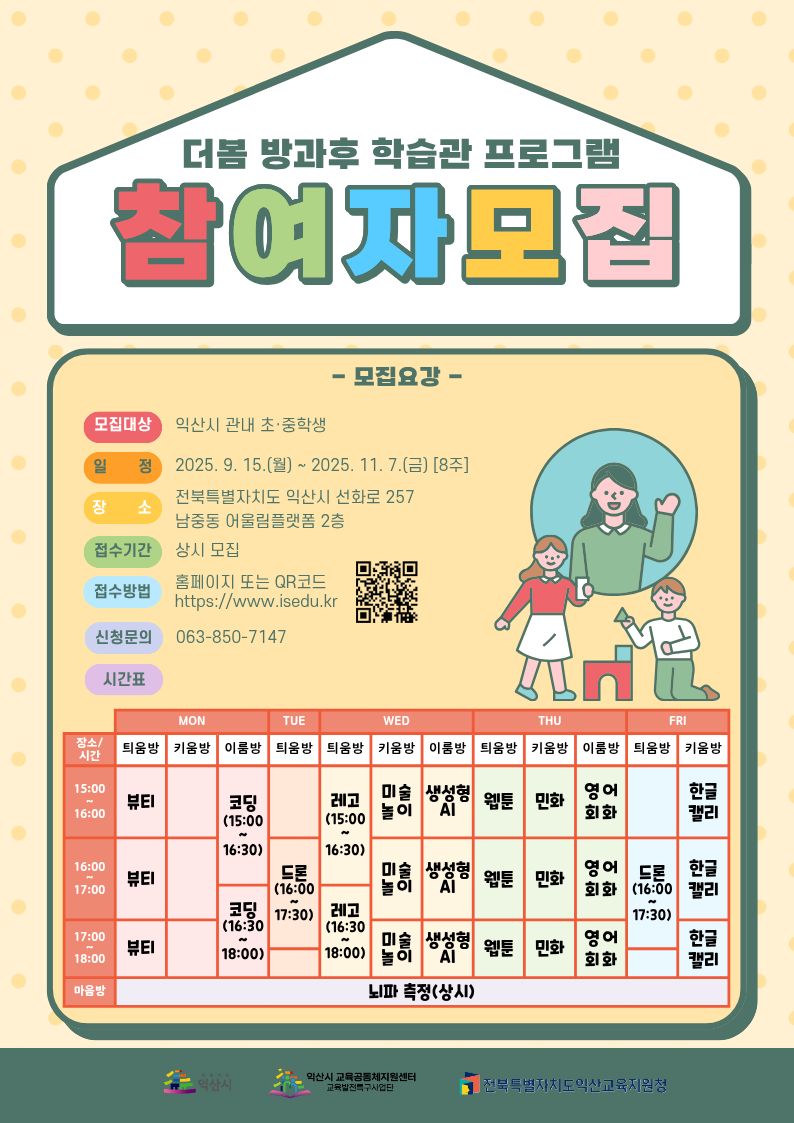 3기 더봄 방과후 학습관 프로그램 참여자 모집